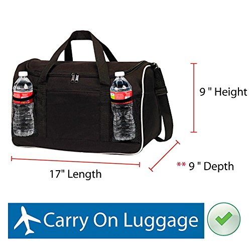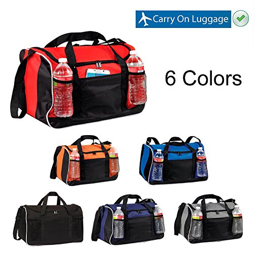 FEATURE: Duffel bag made of 600 Denier Poly with PVC Backing. Two Front mesh pockets, Open front pocket, adjustable shoulder strap, U zipper top for easy use