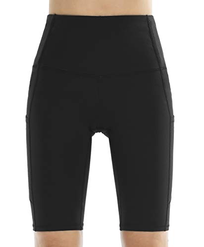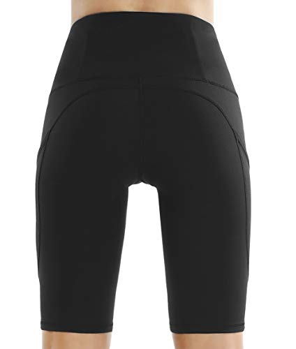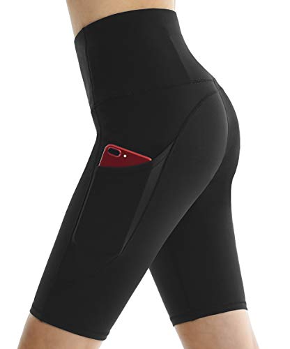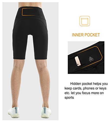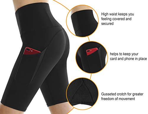 THE GYM PEOPLE High Waist Yoga Shorts for Women Tummy Control Fitness Athletic Workout Running Shorts with Deep Pockets (Small, Yogalongshorts-Black)
