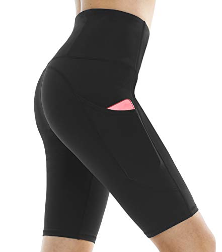 • THE GYM PEOPLE High Waist Yoga Shorts for Women Tummy Control Fitness Athletic Workout Running Shorts with Deep Pockets (Small, Yogalongshorts-Black)